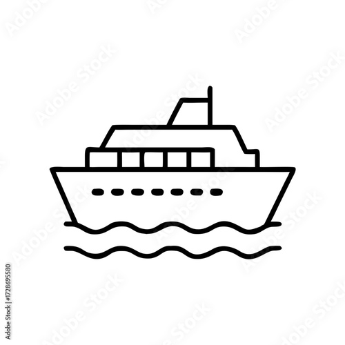 © Semiva39, Obraz premium Line drawing of a passenger ship sailing on calm water