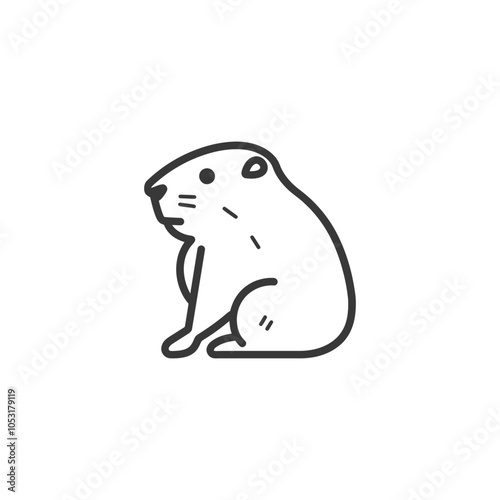 © NikahGeh, Fototapeta premium Line drawing of a sitting groundhog