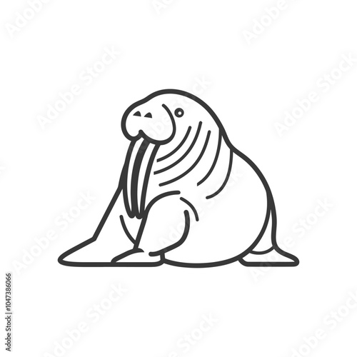 © NikahGeh, Obraz premium Line Drawing of a Sitting Walrus with a Long Tusk