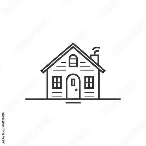 Fototapeta premium Line Drawing of a Small House with a Chimney and a Door