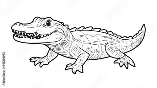 © Retes Art, Fototapeta premium Line drawing of a smiling alligator with its mouth open and sharp teeth.