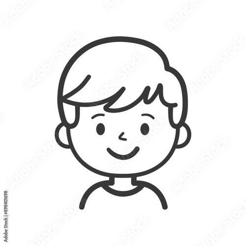 © NikahGeh, Obraz premium Line Drawing of a Smiling Boy with Short Hair