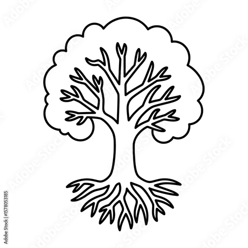 © Lentera, Naklejka premium Line drawing of a tree with exposed roots for natural and environmental projects