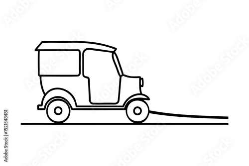 © Mamatarani, Fototapeta premium Line drawing of a vintage three wheeled taxi