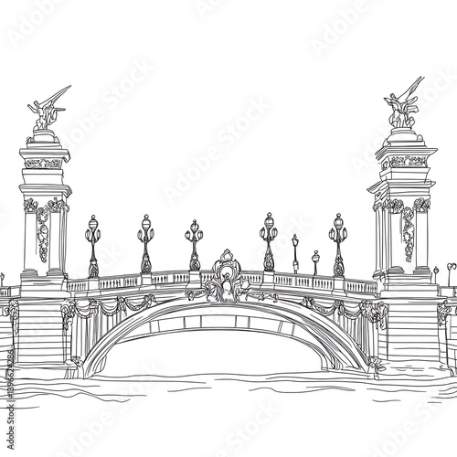 © Shahadat, Fototapeta premium Line drawing of an elegant bridge with ornate details and sculptures.