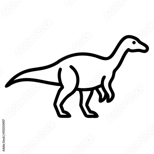 Obraz premium Line drawing of an Iguanodon dinosaur standing in profile, icon, vector