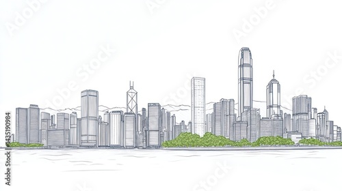 Fototapeta premium Line drawing of Hong Kong skyline