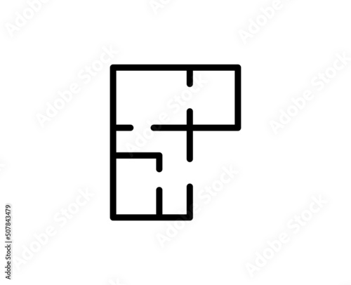 © RaulAlmu, Fototapeta premium Line floor plan icon isolated on white background. Outline symbol for website design, mobile application, ui. floor plan pictogram. Vector illustration, editorial stroсk.