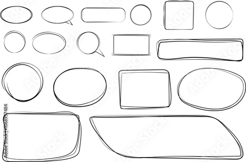 Fototapeta premium line frames, Handdrawn set of square scribbles frame. Doodle line empty frames.
