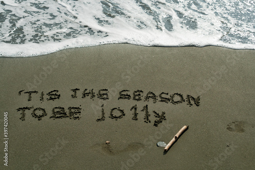 Fototapeta premium Line from Christmas carol on beach sand