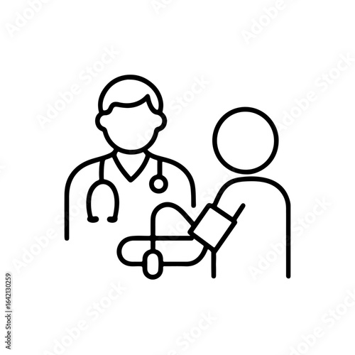 © Roman, Fototapeta premium line icon doctor measures blood pressure vector on white background Vector line icon on white background