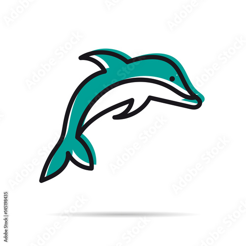 © sergeyvasutin, Fototapeta premium Line icon - jumping dolphin