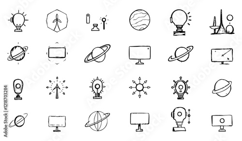 © ZackZephyr, Fototapeta premium Line Icon Set for Technology and Science