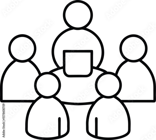 Fototapeta premium Line icon showing multiple people sitting around a table isolated on...