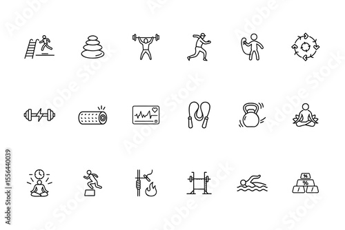Fototapeta premium Line icons of fitness activities equipment including weights yoga swimming Bundle