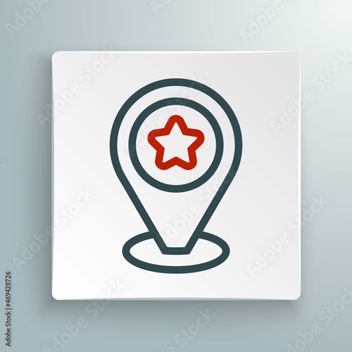 © Iryna, Obraz premium Line Map pointer with star icon isolated on white background. Star favorite pin map icon. Map markers. Colorful outline concept. Vector