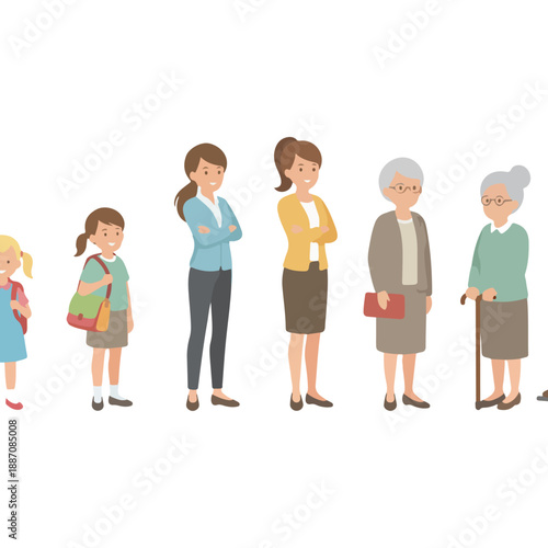 © tere, Obraz premium Line of Cartoon Women Different Ages.