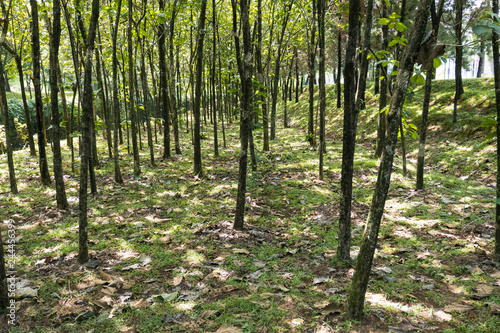 © AlexandraDaryl, Obraz premium Line of trees in the park with sunlight pass through.