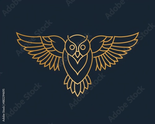 © Serhii, Obraz premium Line Owl. Simple Flying Owl Logo Design with Geometric Shapes