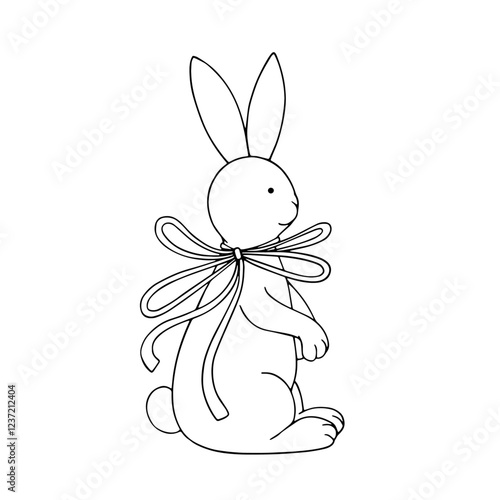 © Катерина Якубович, Obraz premium Line sketch, coloring decorative festive Easter bunny. Vector graphics.