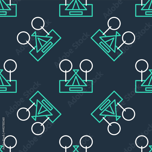 Obraz premium Line Tourist tent icon isolated seamless pattern on black background. Camping symbol. Vector