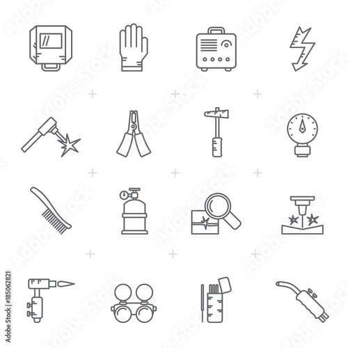 Obraz premium Line Welding and construction tools icons - vector icon set
