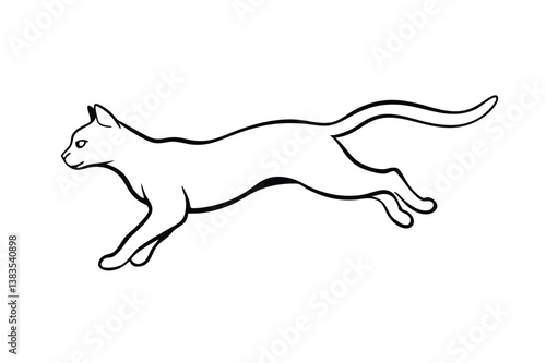 Fototapeta premium Linear Cat Leaping Silhouette, Feline Outline, Simple Line Art, Animal on White