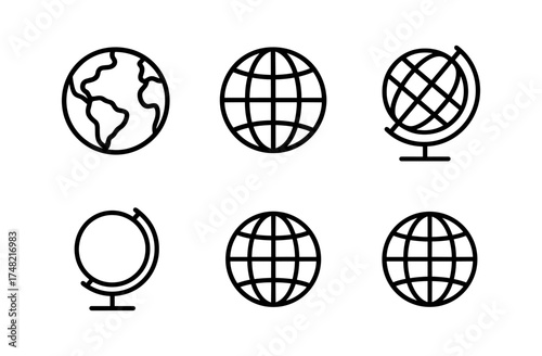 Fototapeta premium Linear globe icons: earth and world map symbols collection
