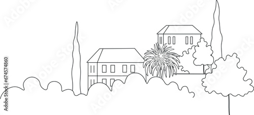 © Софья Подгорная, Obraz premium linear image. Vector illustration. Mediterranean city.