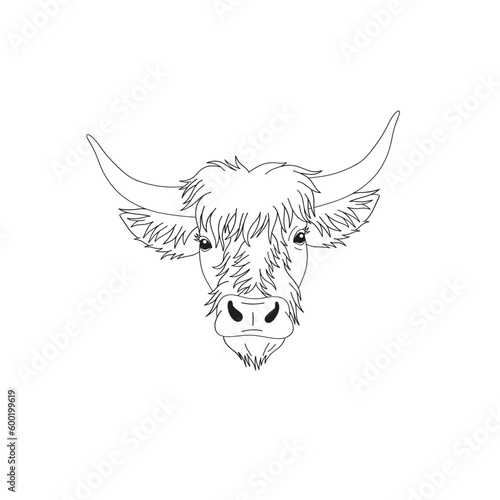 © AngellozOlga, Fototapeta premium Linear Irish cow heard portrait. Western vector illustration isolated on white.