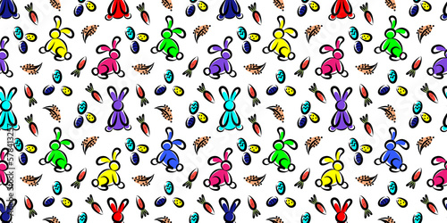 Obraz premium Linear Pattern with bunnies and carrots for Easter