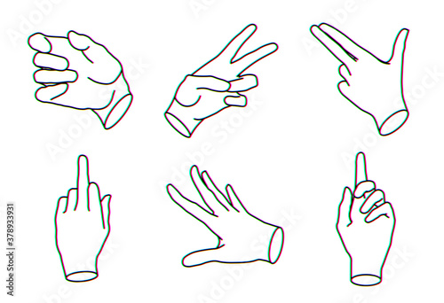 © Nick Risky, Obraz premium Linear set of hands glitch icon. Eps10 vector.