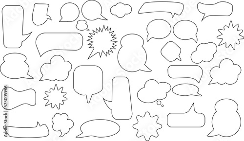 Fototapeta premium Linear speech bubbles, blank chat balloons in various shapes. Comic cloud...