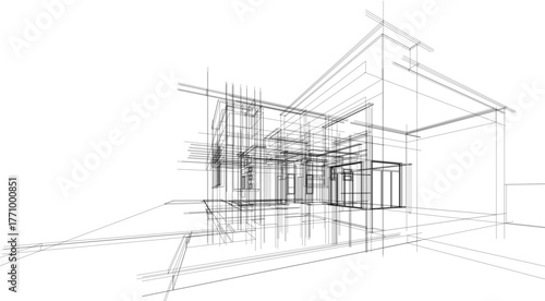 © Yurii Andreichyn, Obraz premium Linear view of house architectural concept vector illustration