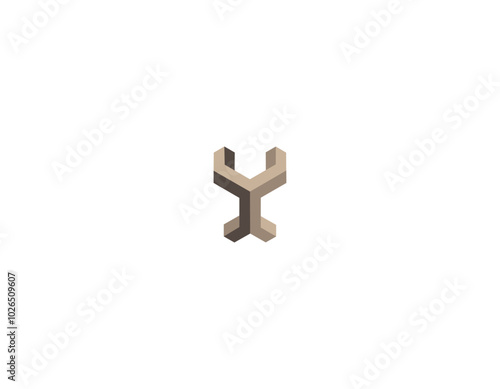 © Nazim, Fototapeta premium Linear Y logo template. Infinite geometric shape. 3D letter Y made of blocks.