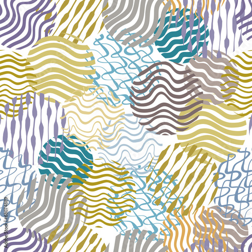 © Sylverarts, Obraz premium Lined circles hand drawn seamless pattern, vector background.