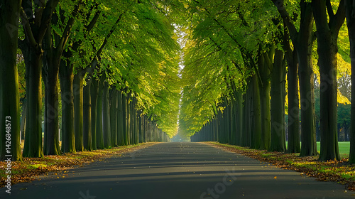 © artzone, Obraz premium Lined Trees Pathway Under Sunlight