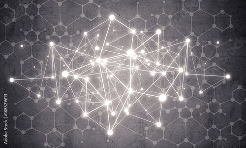 © adam121, Obraz premium Lines and dots as networking idea drawn on cement background