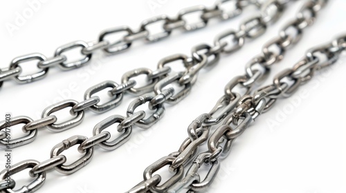 Obraz premium Linked metal chains on white background
