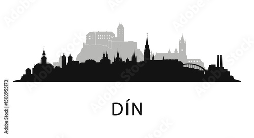 © godsfavoritearts, Fototapeta premium Linz Austria skyline silhouette with city vector.