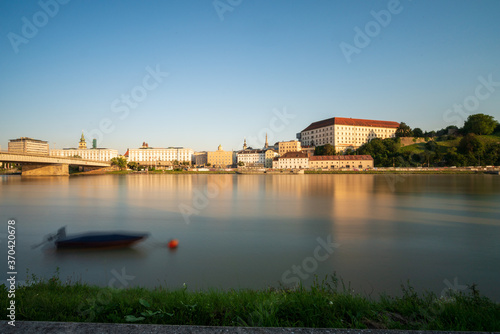 Obraz premium Linz mit Donau bei Sonnenuntergang
