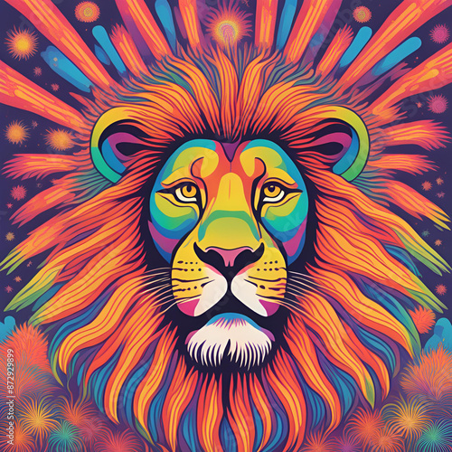 © Toedkiet, Obraz premium Lion amid fireworks festival