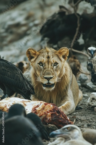 © Goncharenko, Fototapeta premium Lion and Dead Bird