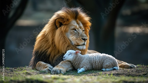 Naklejka premium Lion and Lamb: A Symbol of Peace and Harmony