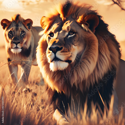 Naklejka premium Lion and the African savanna