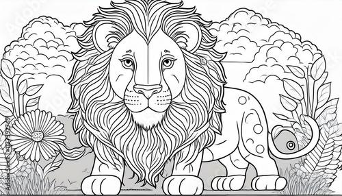 Fototapeta premium Lion coloring page for kids. Generated image