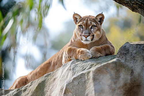 © Oleksandr, Obraz premium Lion Cougar. Isolated on White Background. Mountain Wildlife in Nature