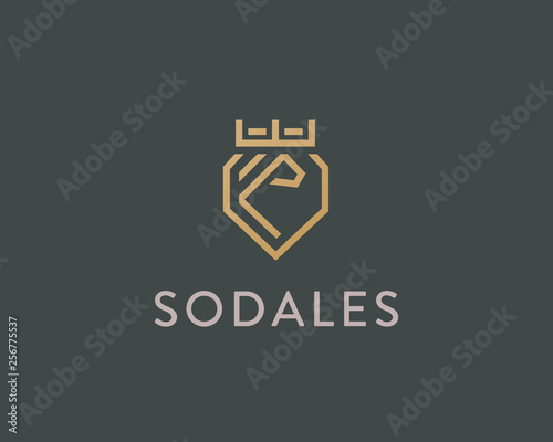 © iamguru, Fototapeta premium Lion crown shield vector logotype. Linear premium logo.