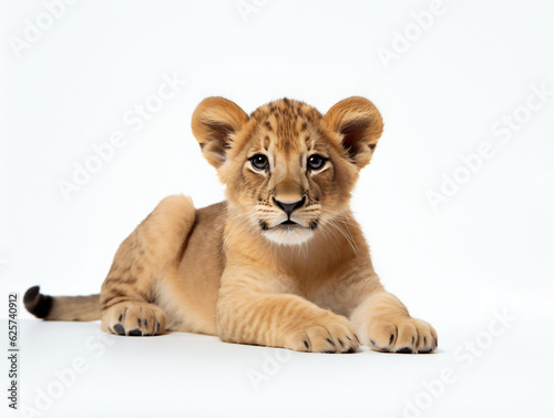Obraz premium Lion cub lay on a white background