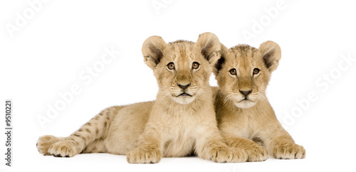 © Eric Isselée, Naklejka premium Lion Cub (4 months) in front of a white background